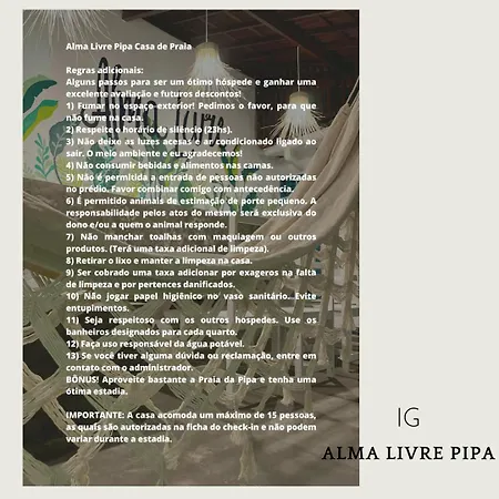 For lunch or dinner, guests can head to Aprecie Restaurante, a nearby restaurant renowned for its international dishes, conveniently situated 250 meters from the homestay. Additionally, they can try out Camarao na Fazenda Pipa, which specializes in Brazilian dishes, conveniently found 5 minutes' stroll away. - ❓